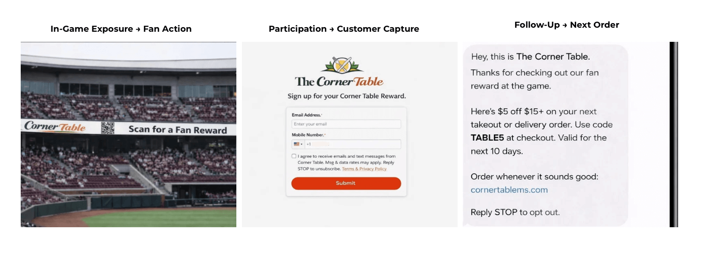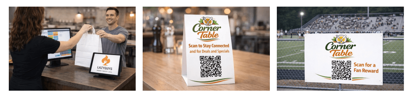 From checkout counters to table tents to live stadium promotions at Dudy Noble and other live events, every interaction becomes a direct entry point into your system.